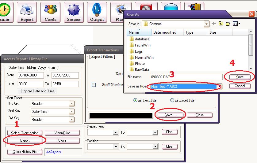 If your intention is to export transactions like Invalid Entry, Wrong Pin and so on, then you should select file type *.ASC as shown: